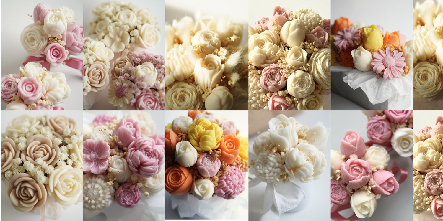 Handgefertigte Sträuße aus veganem Rapswachs.